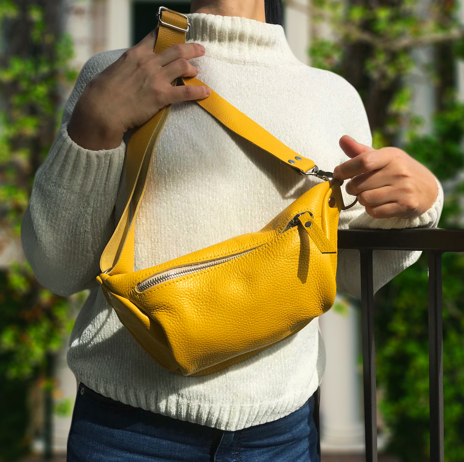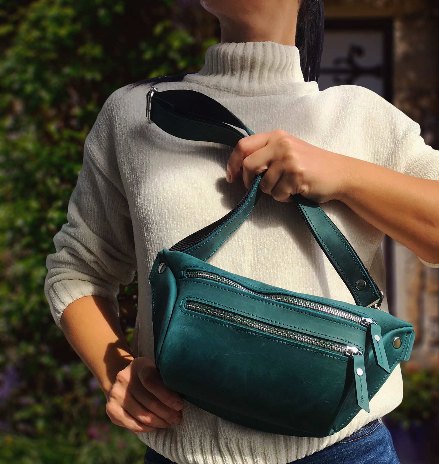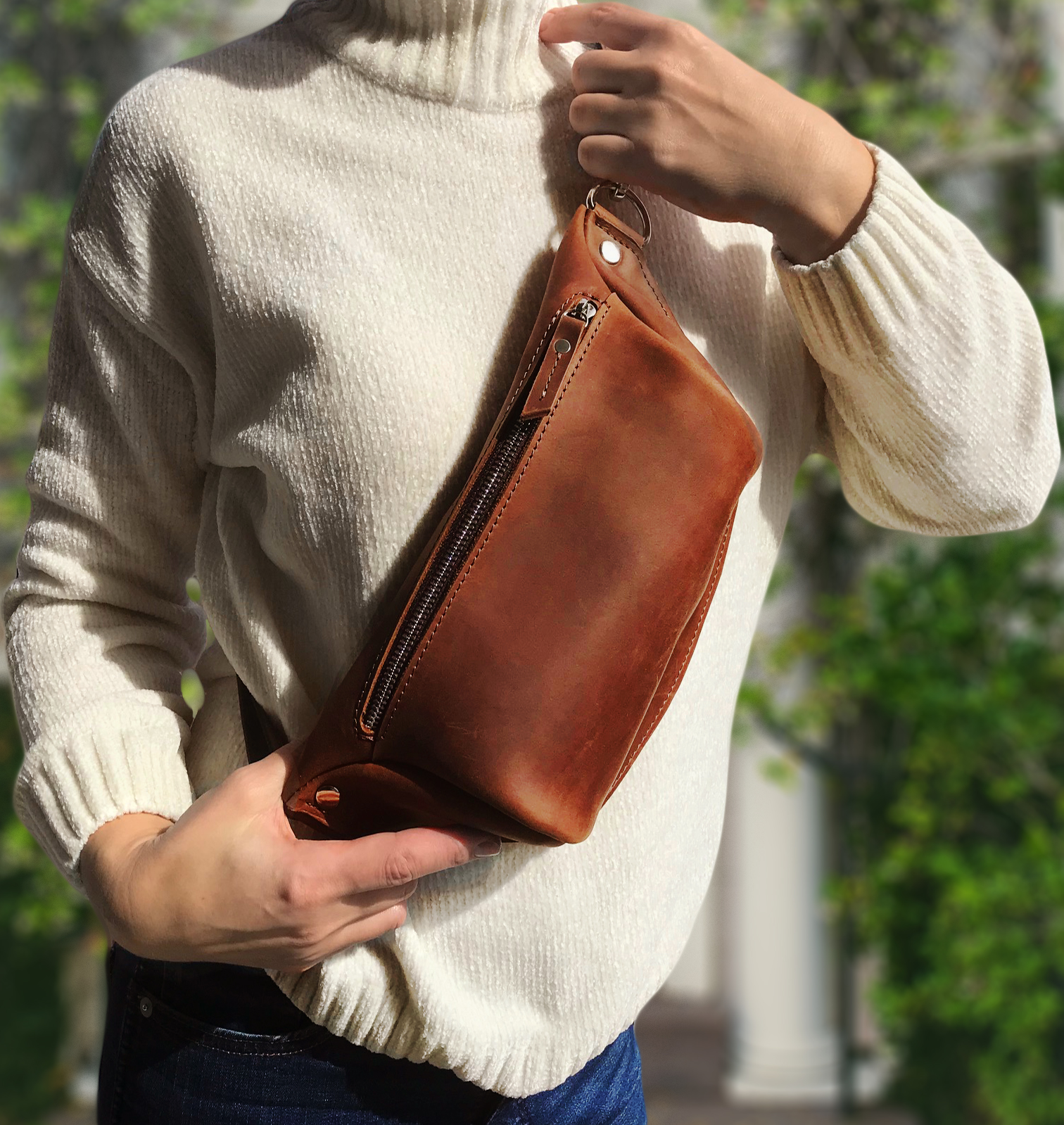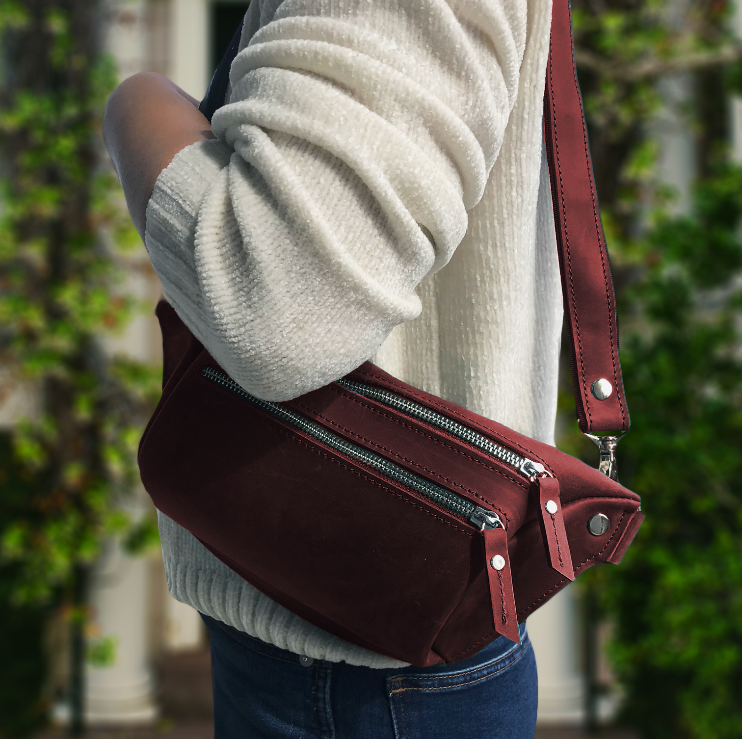 As the Bumbag moves through various scenes, we demonstrate its various size dimensions, different color choices, and leather type and texture choices.