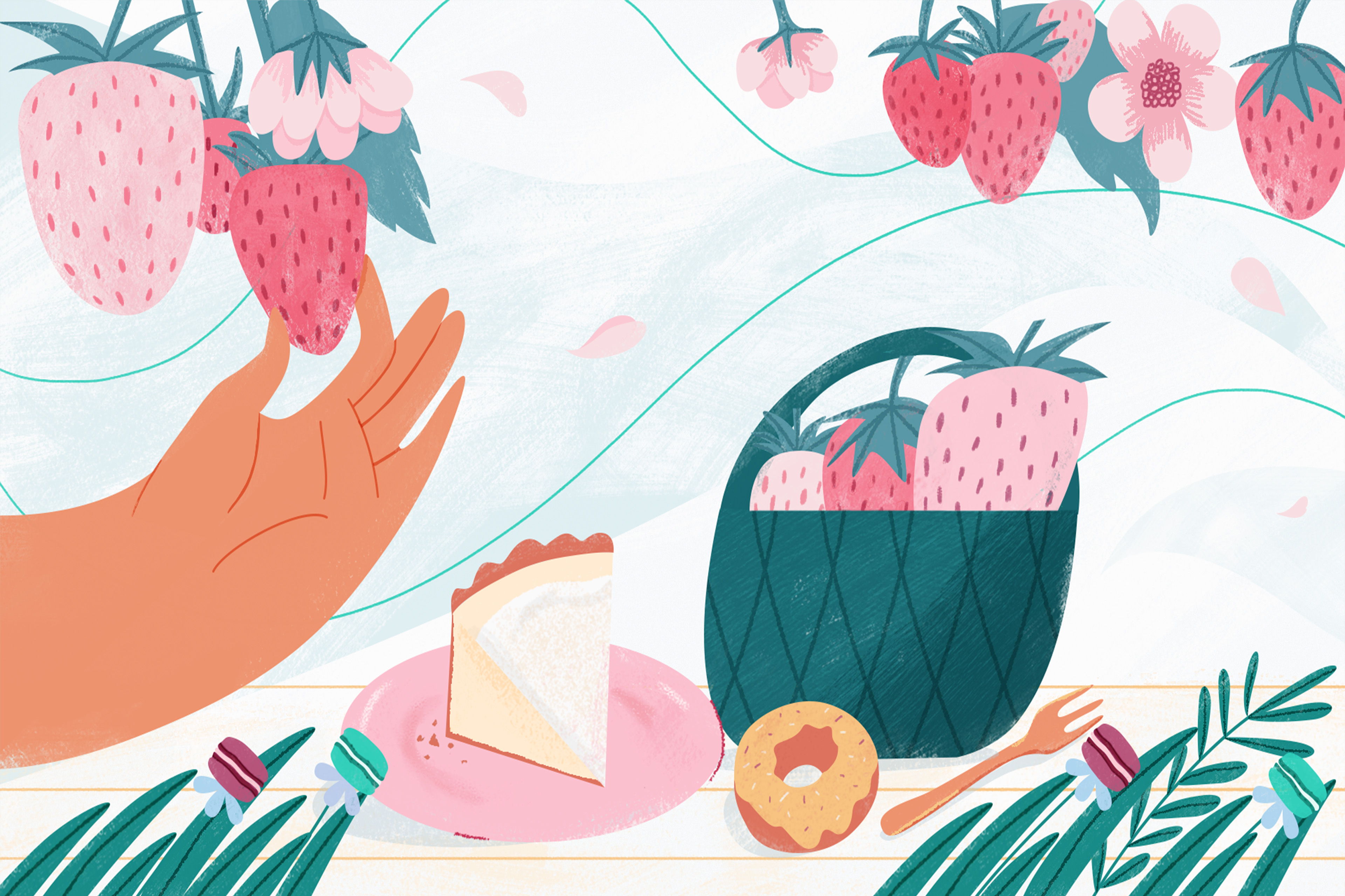 A set of illustrations for Grandma's Kitchen, a fresh bakery café.
